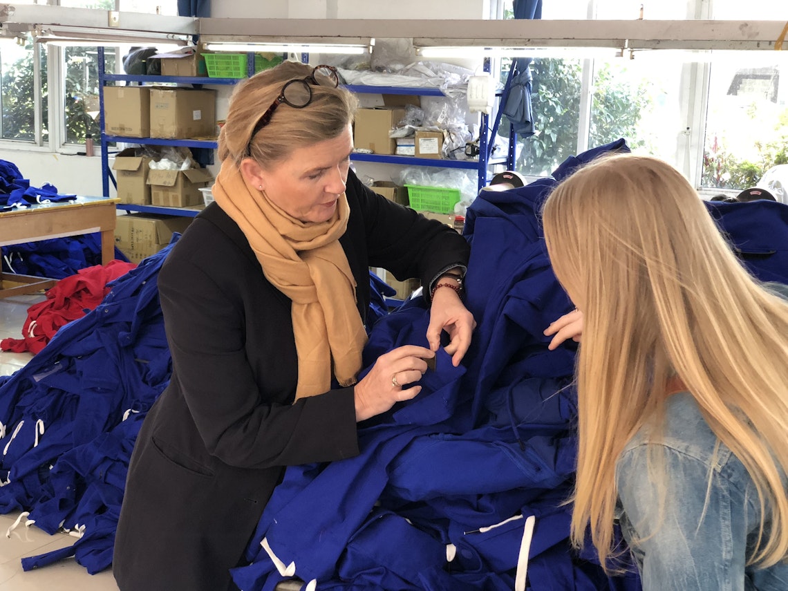 Vi besøker Kina regelmessig for å sjekke opp produksjonen av alle russevarene våre, men på grunn av Covid-19 er det usikkert når vi kan reise ut til Asia igjen. Vi er daglig i kontakt med leverandørene våre og produksjonen av varer er igang som planlagt. Vi gleder oss til å få dette ut til dere i feb-mars 2021. Vi har fabrikker i flere byer, Shanghai, Ningbo og Najing og alle følger våre krav og retningslinjer (les mer her). I billedgalleriet under kan du se bilder fra siste besøk.